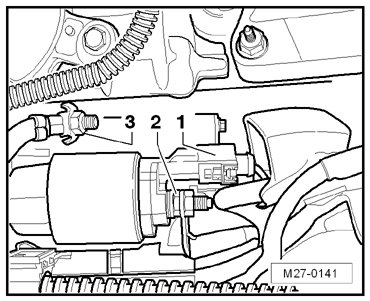 - Disconnect the terminal 50 connector - 1 - on the solenoid switch.