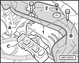- Bolt transmission mount to transmission plate - A - with bolts - 2 -, see tightening torques.