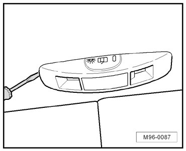 - Carefully pry out the Right Rear Reading Lamp ( W12) with the Right Anti-Theft Alarm Ultra Sound Sensor (G171) with a screwdriver.