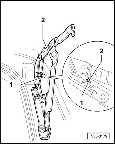 • With hinge closed, adjustment bolt - 1 - must make contact to top - 2 - without pressure.
