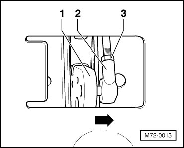 - If present, loosen nut - 3 - and press connecting rod ball joint - 1 - off catch - 2 - - arrow - using screwdriver.
