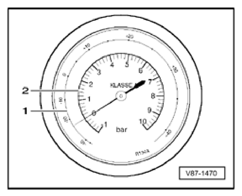 - High pressure gauge measures pressure and temperature, which expand uniformly from outlet of A/C compressor via the condenser up to constriction (restrictor, or expansion valve) with A/C system switched on.