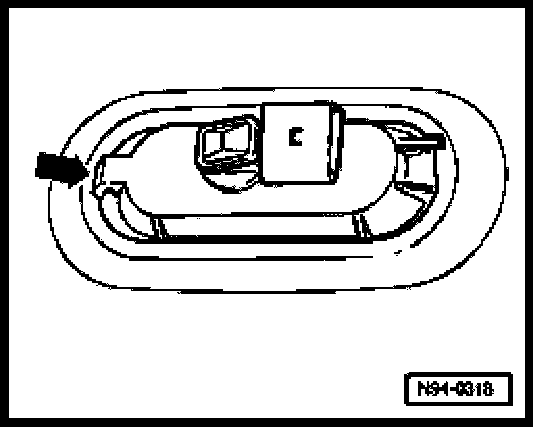 - On inner side of bumper, carefully press retainer clip in direction shown -arrow-.