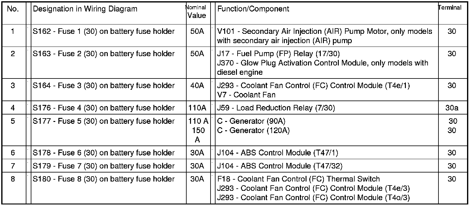 Fuse Arrangements (on fuse panel), from July 2002