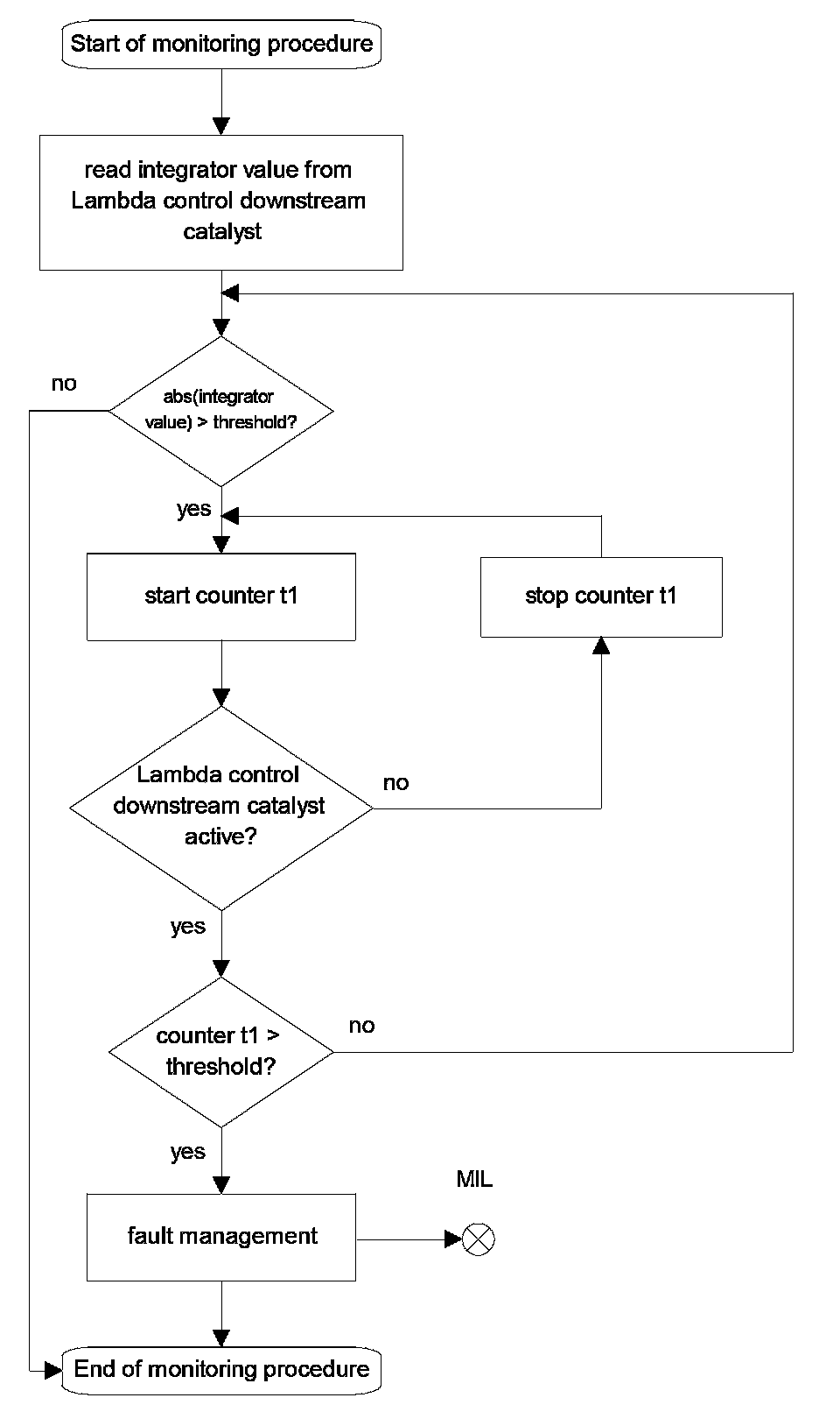 If the adaptive values exceed their plausible ranges, then the MIL is illuminated and the fault is stored.