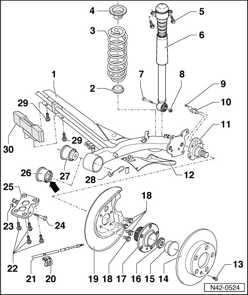 • Removing and installing => [ Hydraulic Bonded Rubber Bushings ] Hydraulic Bonded Rubber Bushings.