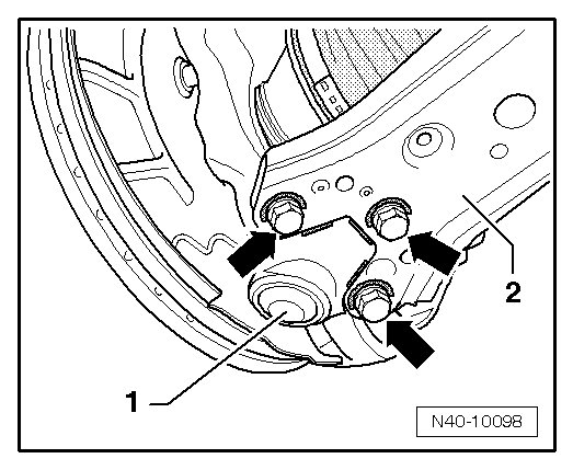 • Mark installation position of bolts - arrows - for ball joint - 1 - on control arm - 2 -