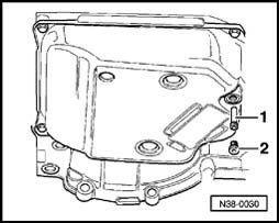- Remove ATF inspection plug from pan - arrow -.