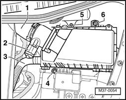 - Disconnect Secondary Air Injection (AIR) pump hose - 3 - from air filter housing.