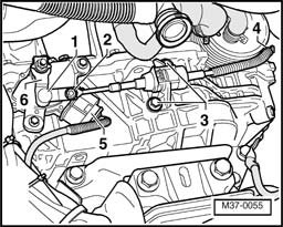 - Remove bolts - 4 -, - 5 -, and - 6 -.