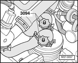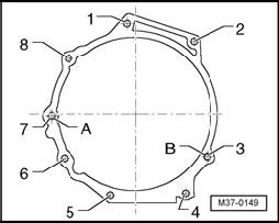 - Install 6 new nuts - arrow - for mounting torque converter to drive plate using socket wrench insert V/ 175, see tightening torques.