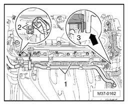 - Disconnect line - 2 - of power steering on transmission - arrows A -.