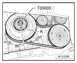 - Turn crankshaft 60° using Socket key T03003 for each nut in turn.