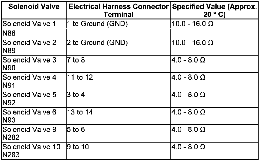This procedure is used to diagnose all Solenoid Valves in the valve body.