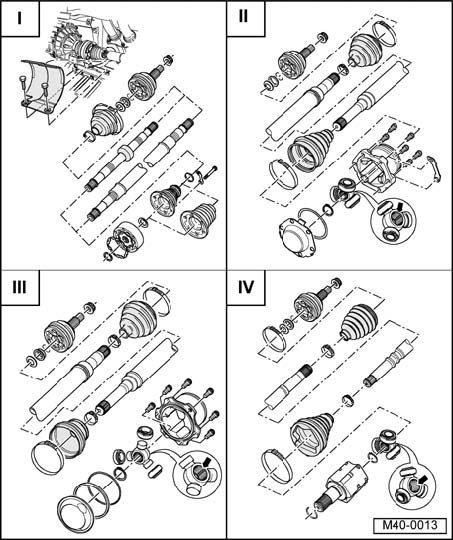 I - Drive axle with Constant Velocity (CV) joint, servicing