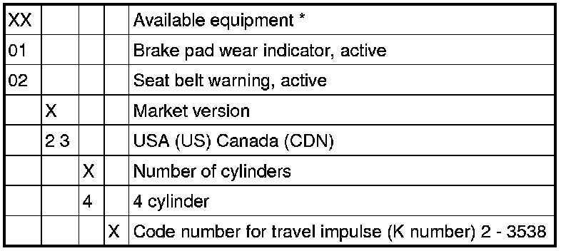 - Confirm vehicle applicable market, model and equipment particulars, determine and enter code number from code table below.