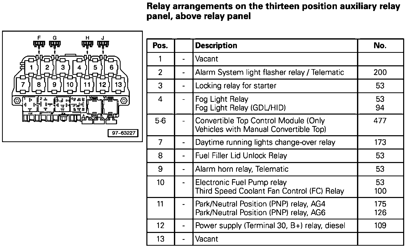Relay Arrangements on the Thirteen Position Auxiliary Relay Panel, Above Relay Panel, From June 2004