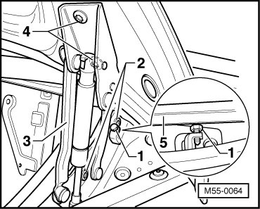 • With hinge closed - 5 -, adjustment bolt - 1 - must make contact at top without pressure.