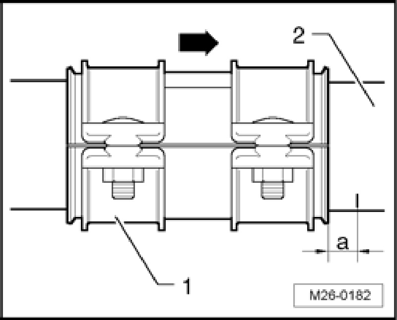 - Align double clamp - 1 - to marking on catalytic converter - 2 -.