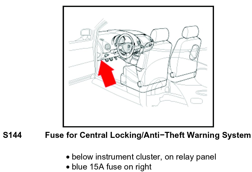 Fuse For Central Locking/Anti-theft Warning System S144: