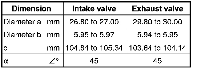 Intake and exhaust valves must not be refaced by grinding. Only lapping is permitted.