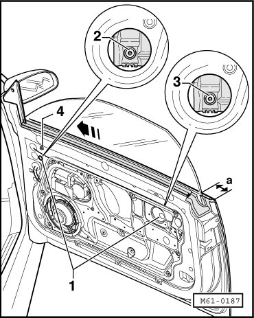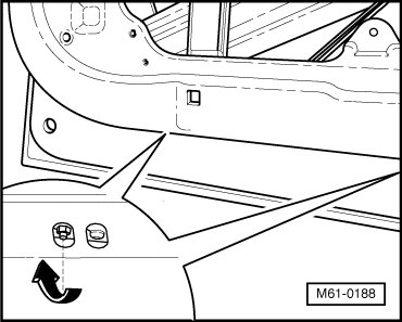 - Lower door window completely and raise door window to top position again until clamp - 2 - is accessible.