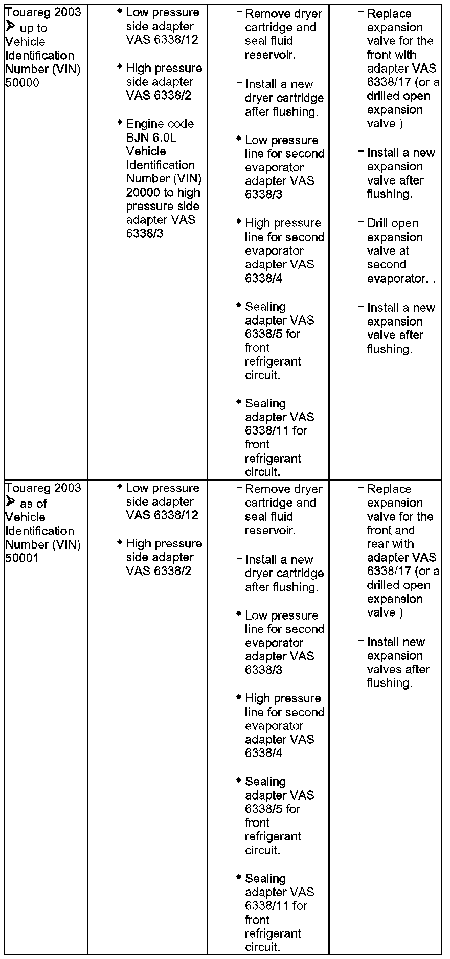 - On vehicles with second evaporator (Touareg), the front and rear refrigerant circuits must be flushed individually. Seal the front refrigerant circuit using sealing adapter VAS 6338/5 and sealing adapter VAS 6338/11.