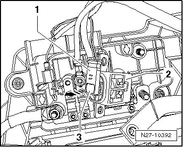 - Pull the button - 3 - in direction of arrow and unlock the connector - 1 -.