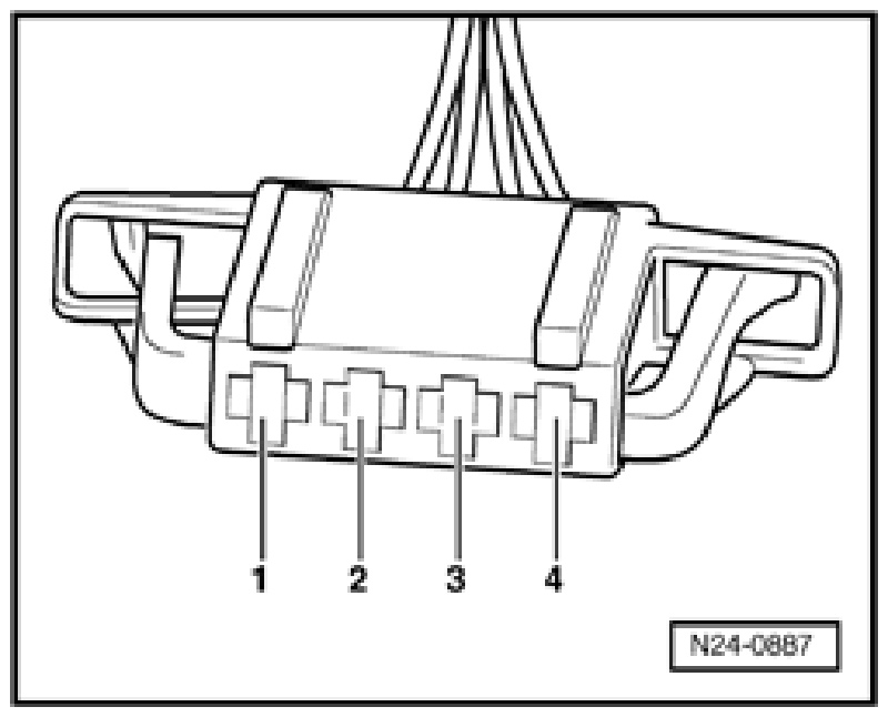 - Connect multimeter using adapter cables to terminal 4 of connector and chassis Ground (GND) for voltage measurement.