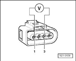 - Connect multimeter with test leads to terminals 1 and 3 connector for voltage measurement.