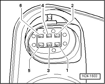 - Using a Multimeter, check the Throttle Drive (for Electronic Power Control (EPC) (G186) at the Throttle Valve Control Module (J338) electrical harness connector terminals 2 to 6 for voltage.