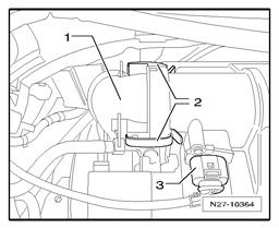 - Open retainer clips -1- and remove hose -2- from air filter housing.