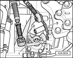 - Pull off securing clip - 2 - and press relay lever - 3 - to side and out of mounting.