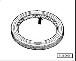 - Fill area between sealing lip and dust lip - arrow - halfway with sealing grease G 052 128 A1.