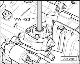 - Drive in sealing ring as far as stop using Sleeve VW 423.