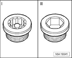 II - Oil filler or drain plug with hex socket head, 30 Nm