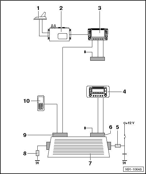 • Digital satellite radio tuner, removing and installing, => [ Digital Satellite Radio Tuner ] Digital Satellite Radio Tuner.