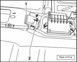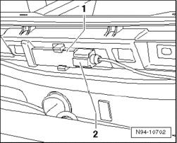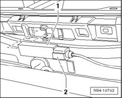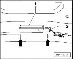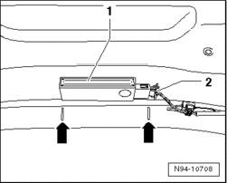 - Align foam piece -1- together with antenna at wiring -2- on center console.
