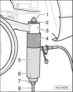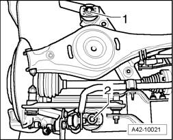 - Lower subframe 10 cm using Engine-/Gearbox Jack VAG1383A.