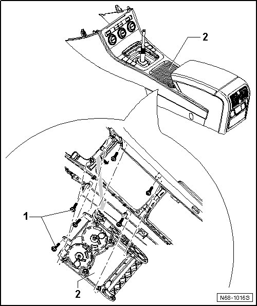 - Slide storage compartment forward and remove it downward from center console - arrow -.