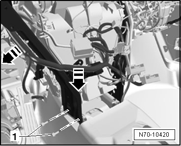- Remove the wiring harness from the assembly carrier - arrow -.
