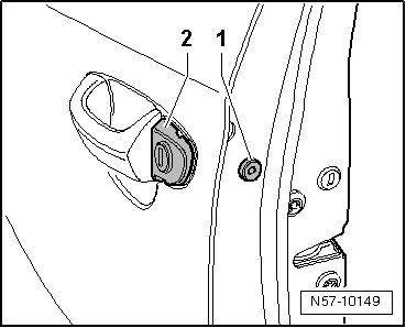 - Remove the securing bolt - 1 - for lock cylinder housing with lock cylinder - 2 -.