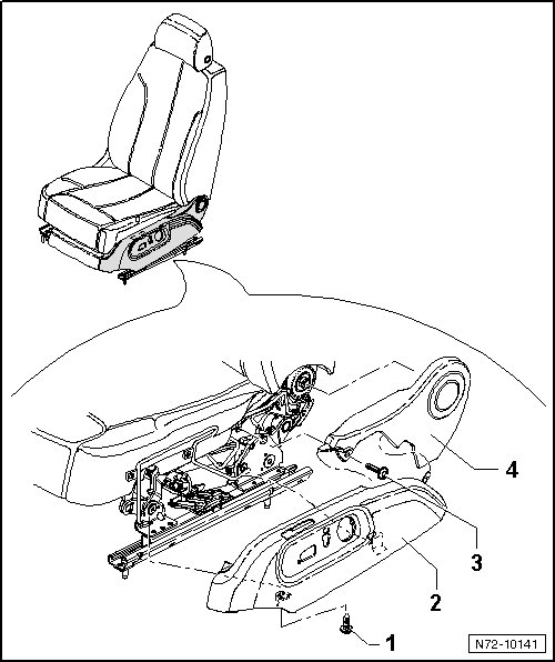 - Remove screw - 3 - (3.5 Nm) and remove trim - 4 - from seat frame.