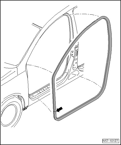 - Align inner door seal with vulcanized point - arrow - at the height of the lower hinge.