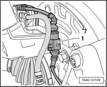 - Separate the connector - 1 - for brake pad wear indicator.