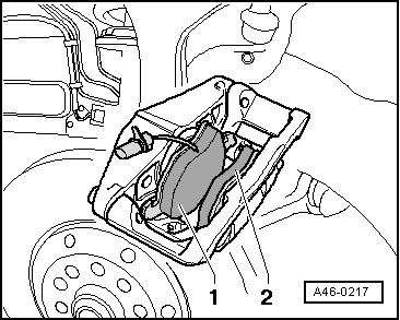 - Set outer brake pad - 2 - with retaining springs into brake caliper.