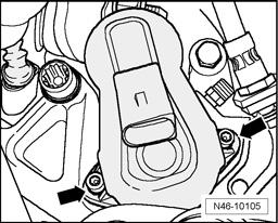 - Remove both Torx(R) bolts - arrows - from parking brake motor.