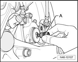 - Turn spindle back slightly with help of a Torx(R) insert T45 - A -, until parking brake motor can be correctly positioned.