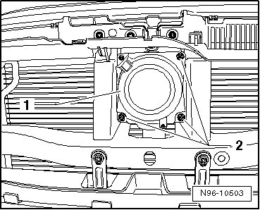 - Disengage and disconnect harness connector - 2 - and remove Distance Regulation Control Module from vehicle.