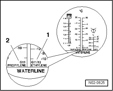 The refractometer scale - 1 - is designed for coolant additives G11, G12, G12 Plus and G12 Plus Plus.